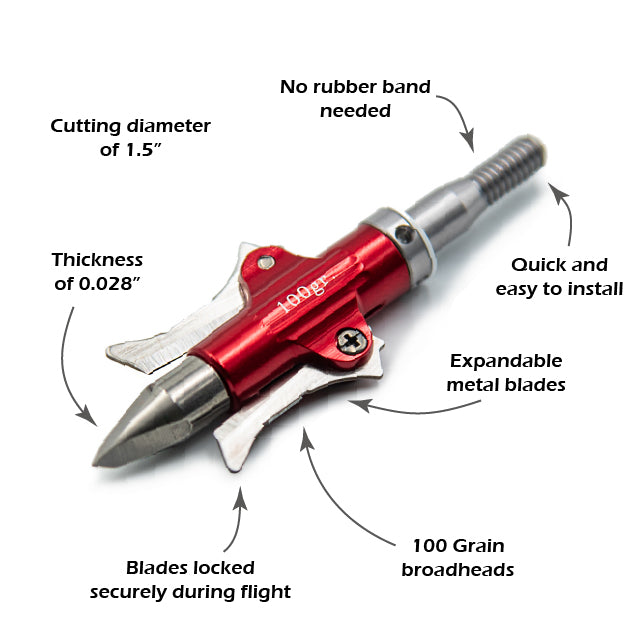 Whether you're using a crossbow or a compound bow, these 100 grain broadheads deliver exceptional reliability, making them an ideal choice for hunters who want expandable 2-blade mechanical broadheads with superior performance.