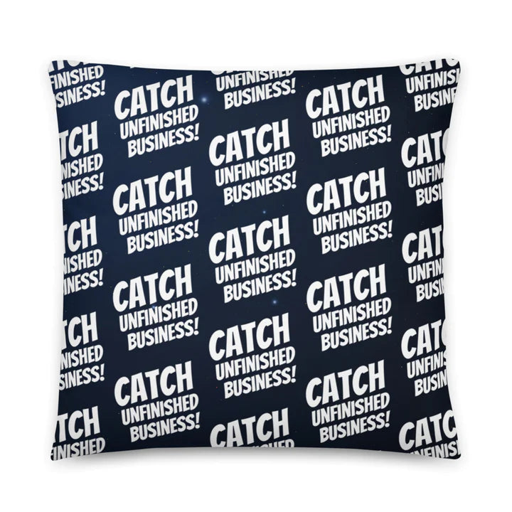 Unfinished Business may be cute, but he's a troublemaker that keeps running away and not getting tasks done. Keep this pillow as a reminder to catch Unfinished Business for yourself and get your responsibilities done.