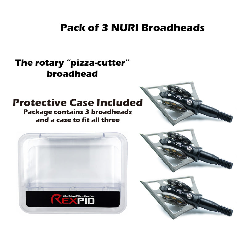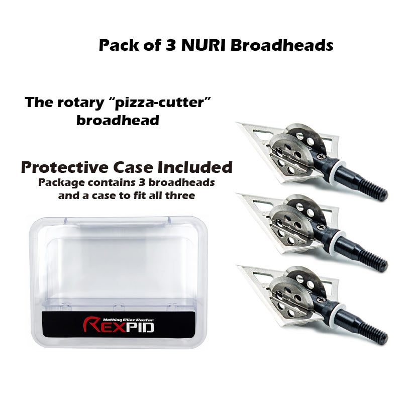 - NURI BROADHEADS: Engineered to create a devastating wound channel! REXPID NURI crossbow broadheads use a set of razor-sharp revolving blades to deliver unparalleled penetration, ensuring deeper wounds that maximize your hunting success.