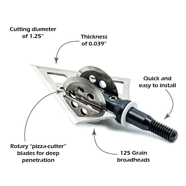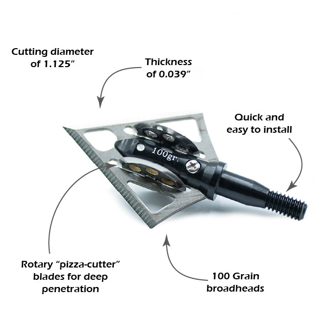 - ROTARY WING BLADES: Experience enhanced broadhead penetration with every hit! NURI's advanced rotary wing blades affixed to the broadhead work in tandem to push the crossbow arrow tip over the ribs and other small bones, optimizing your shot. These "Pizza-Cutter" blades are razor-sharp with guaranteed penetration.