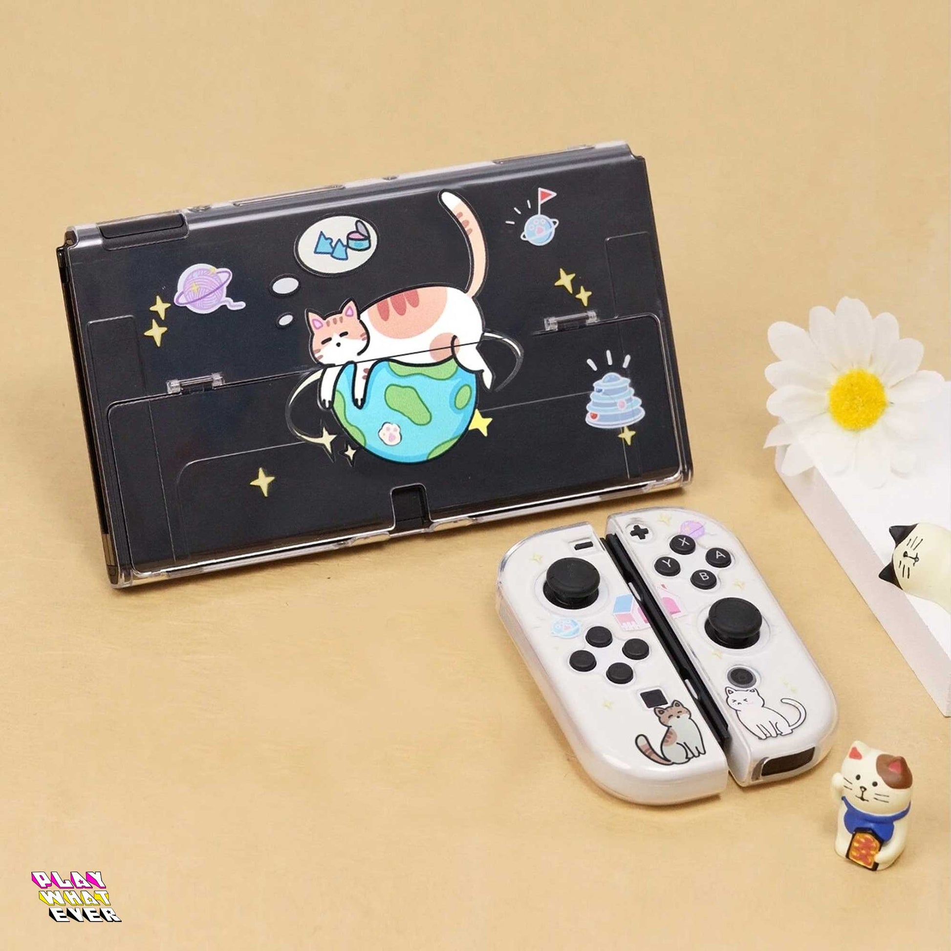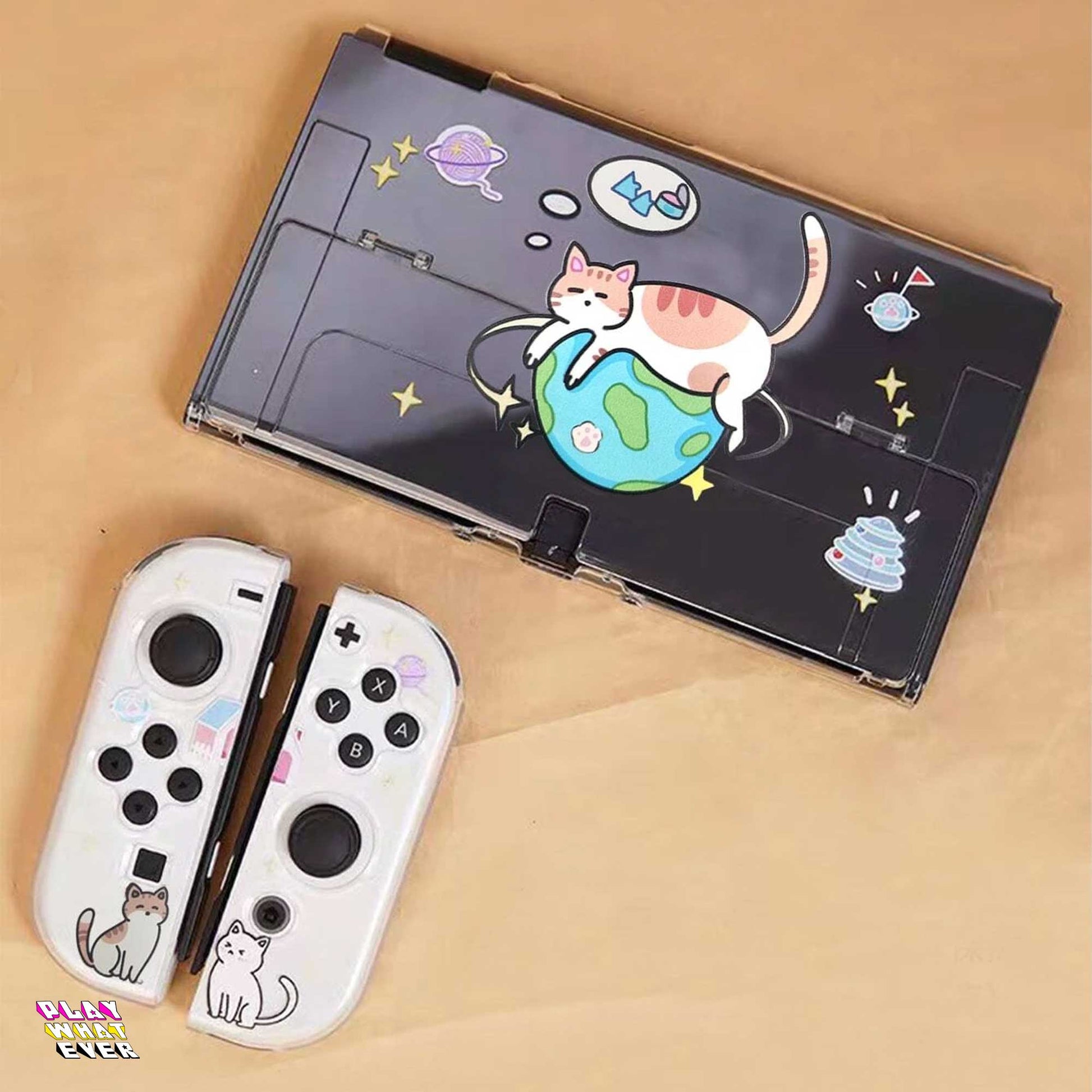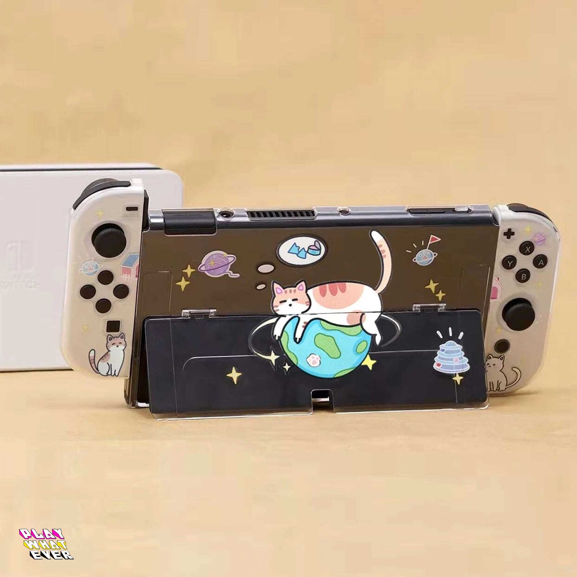 Go cats! Cats rule the planet - if they have enough tuna to live that is. An adorable lightweight Nintendo Switch case with cats and planets.