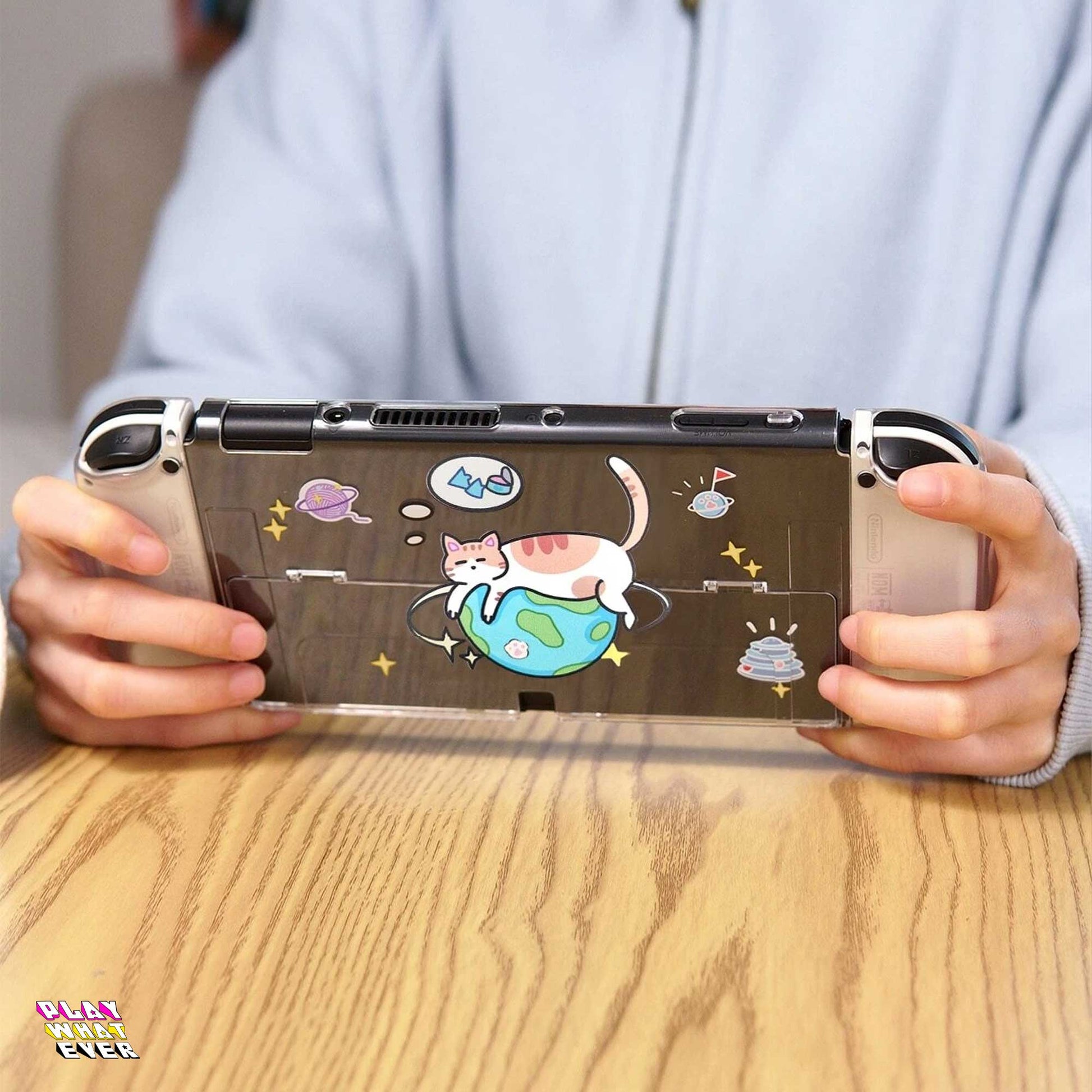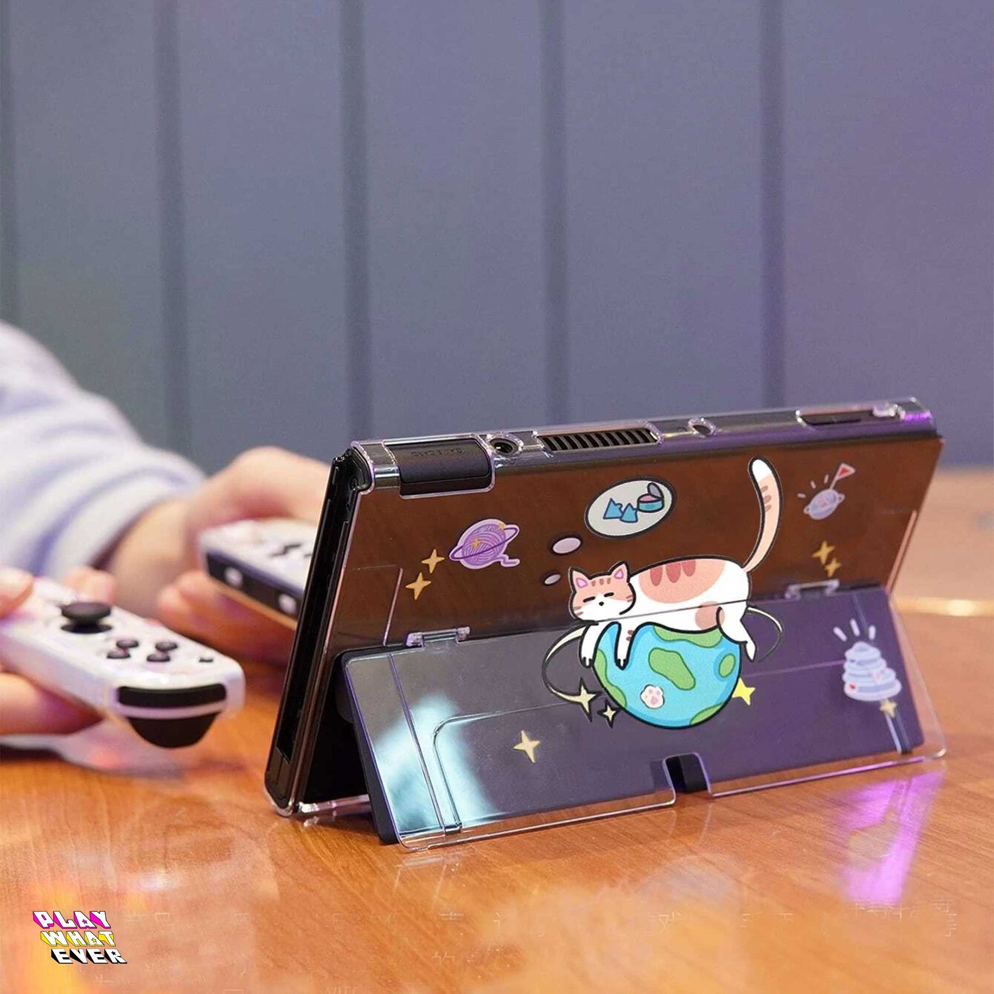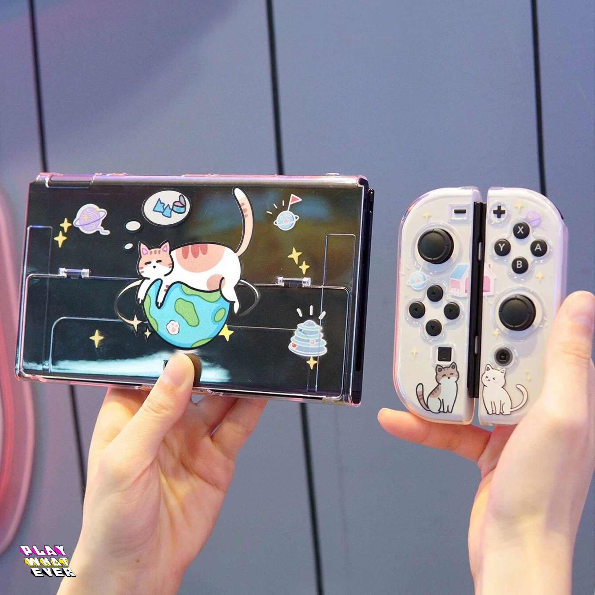 Go cats! Cats rule the planet - if they have enough tuna to live that is. An adorable lightweight Nintendo Switch case with cats and planets.